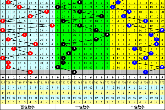 百位分析:百位最近9期出号:0-4-1-6-2-5-0-1-1,奖号奇偶比为4:5,012路比为3:4:2,大小比为2:7,本期百位参考号码045。